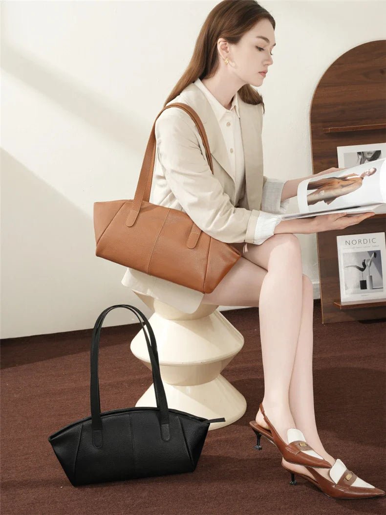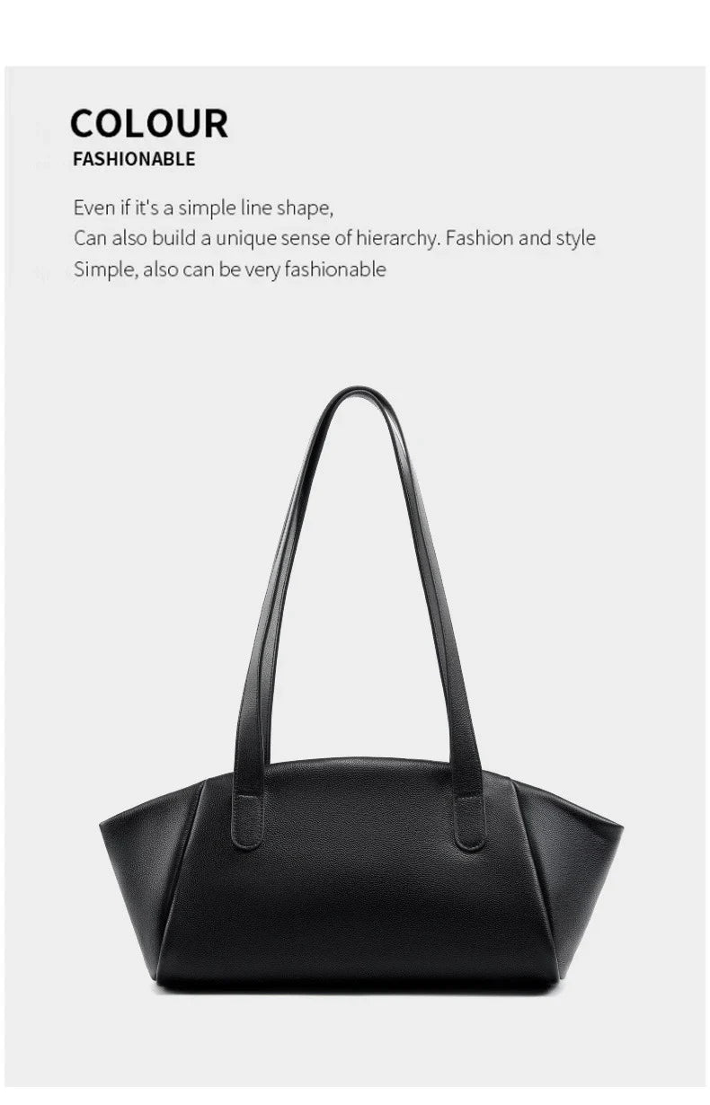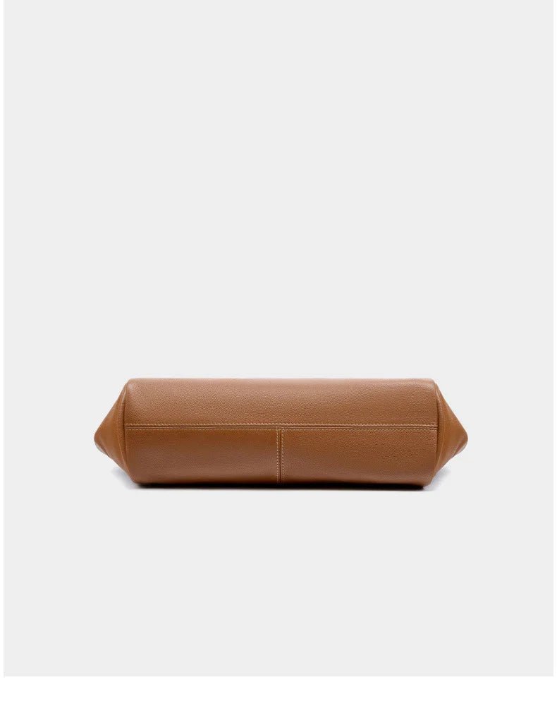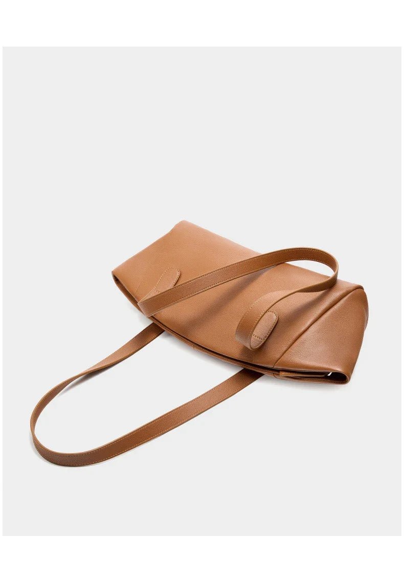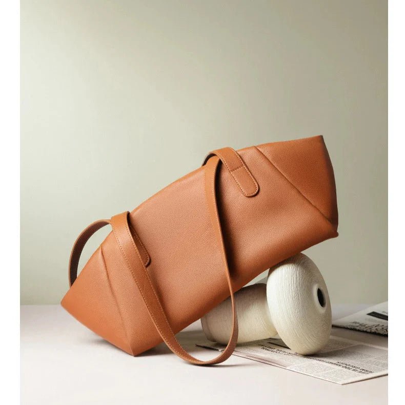 We present the sophisticated trapezoidal genuine leather bag, a masterpiece of design and functionality. Created for the modern woman who values style and practicality, this piece is a testimony of the impeccable handicraft