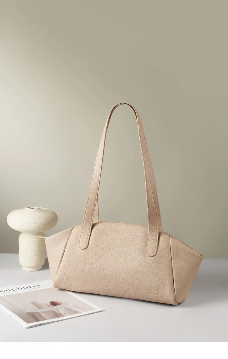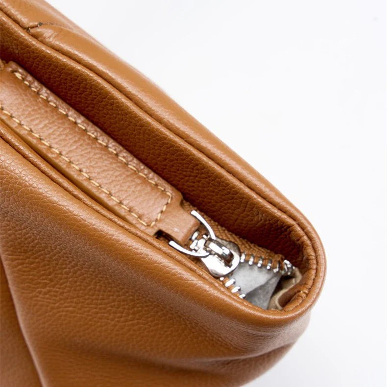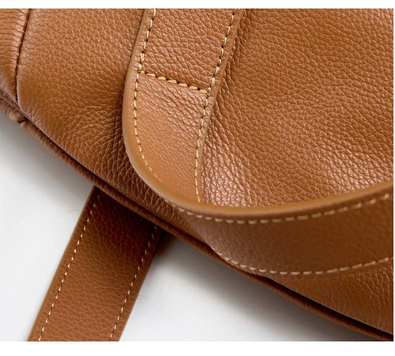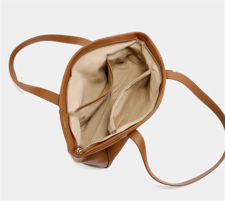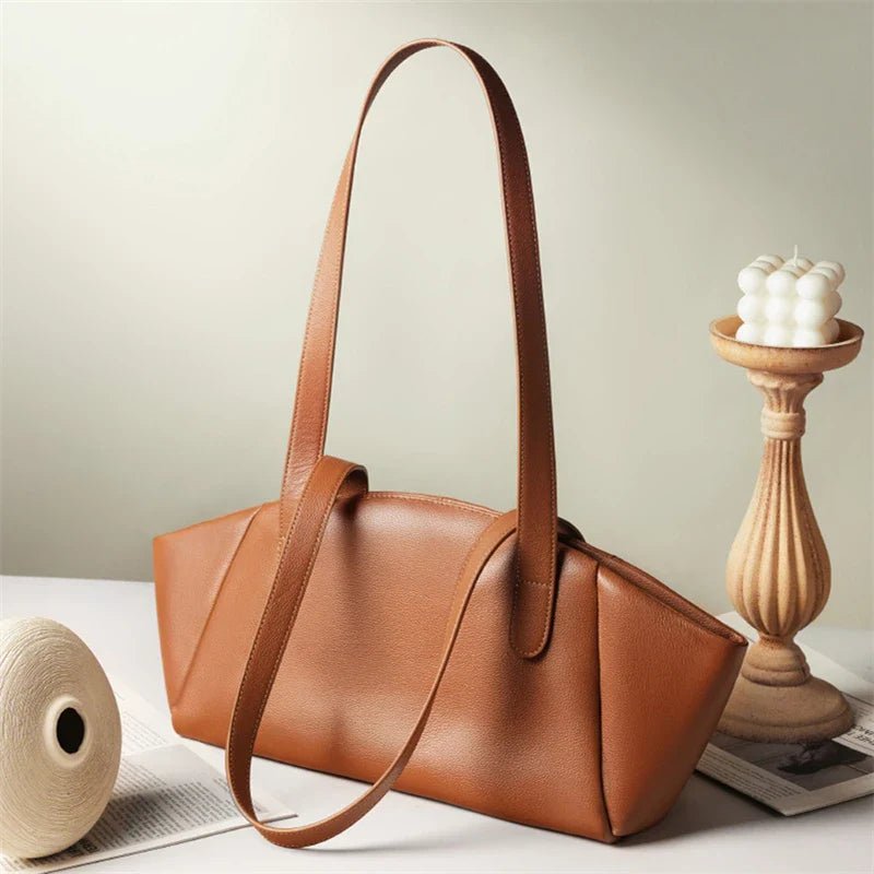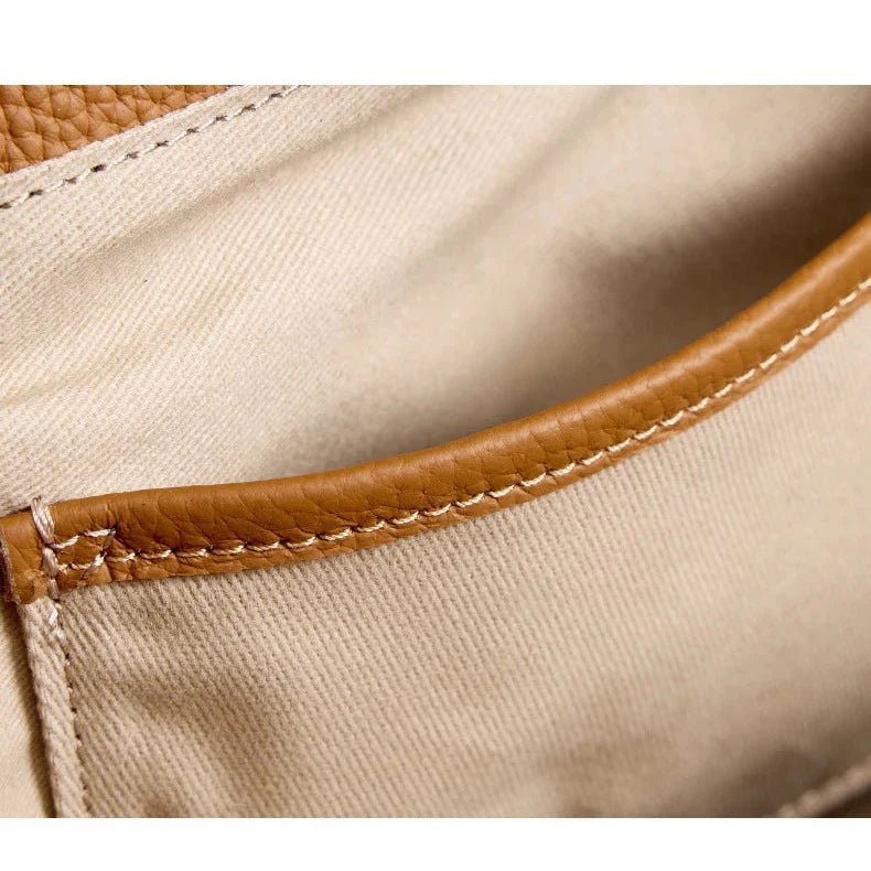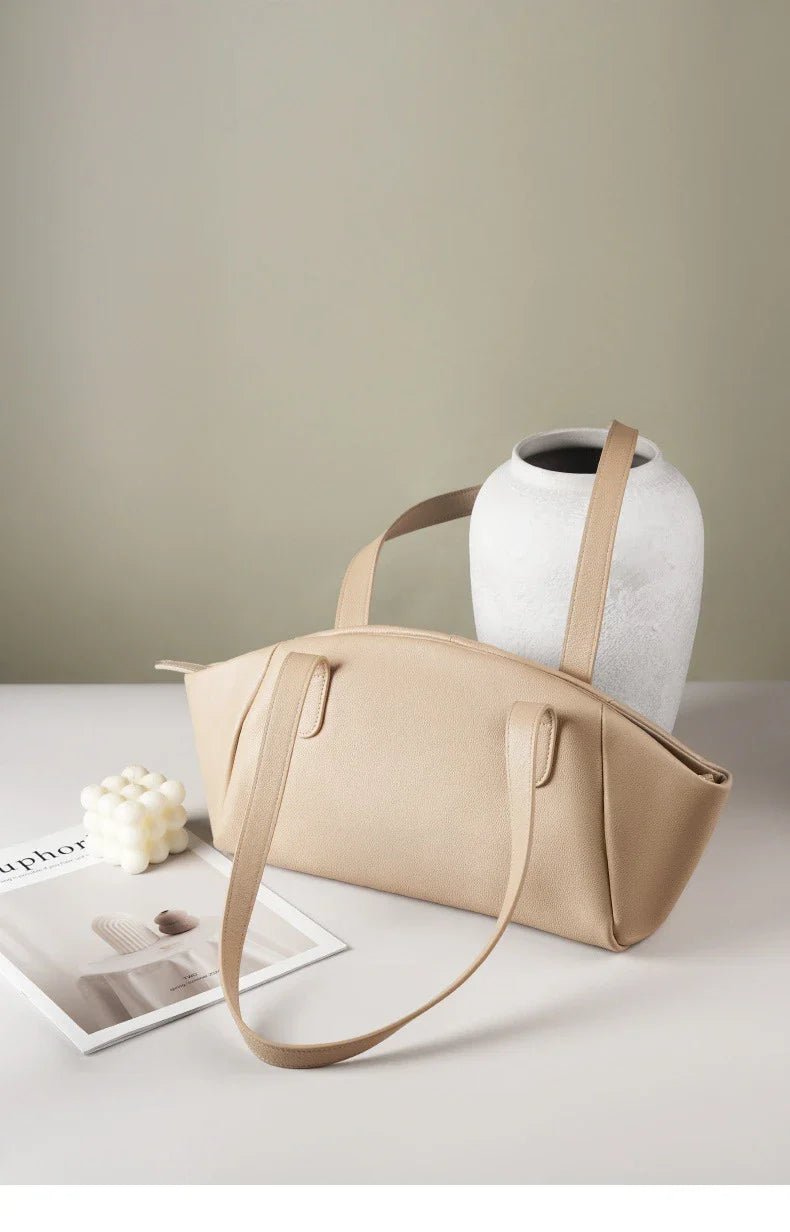 We present the sophisticated trapezoidal genuine leather bag, a masterpiece of design and functionality. Created for the modern woman who values style and practicality, this piece is a testimony of the impeccable handicraft