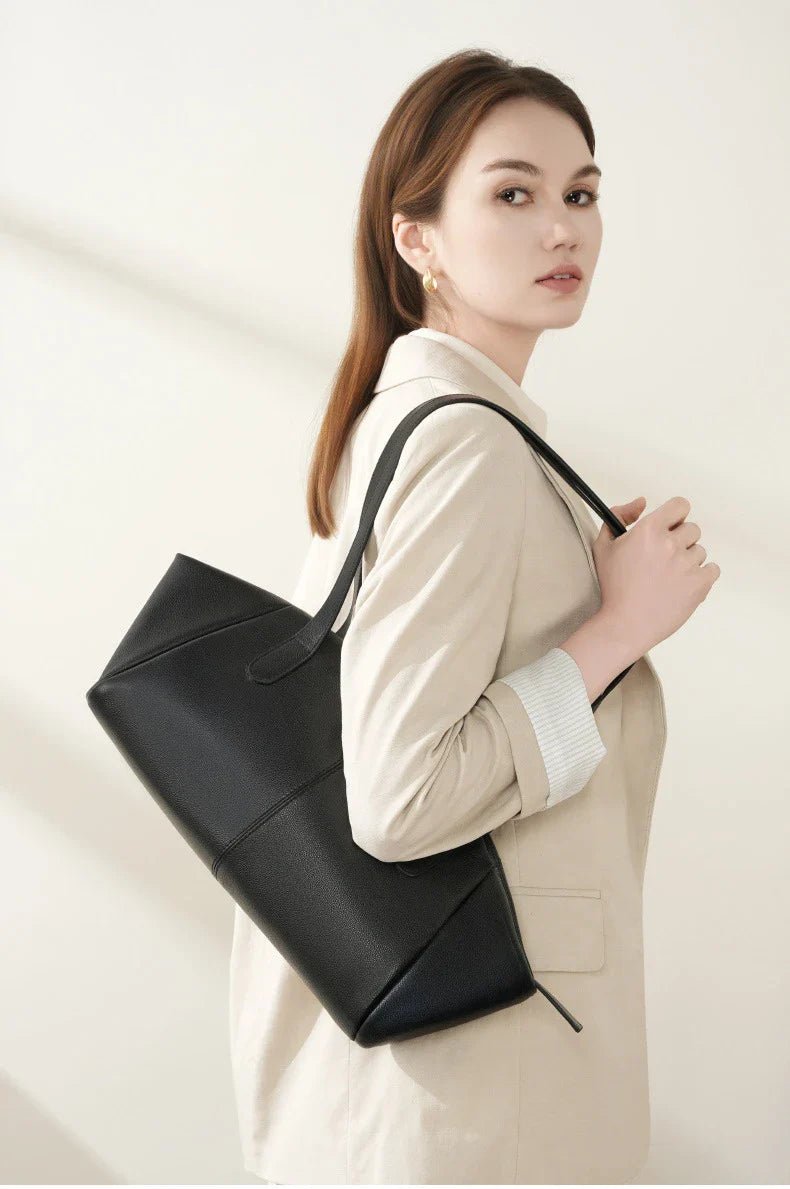 Hifashion 100% Real Genuine Leather Large Tote Shoulder Bags For Women 2025 Luxury Designer Trapeze Shopper Work Ladies Handbags
